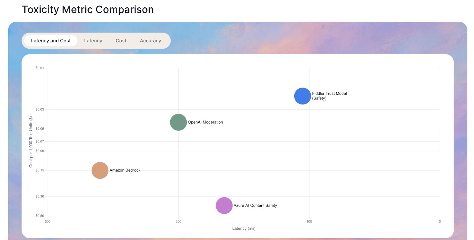 Detailed breakdowns of offerings from OpenAI, Amazon Bedrock, Azure, and Fiddler AI