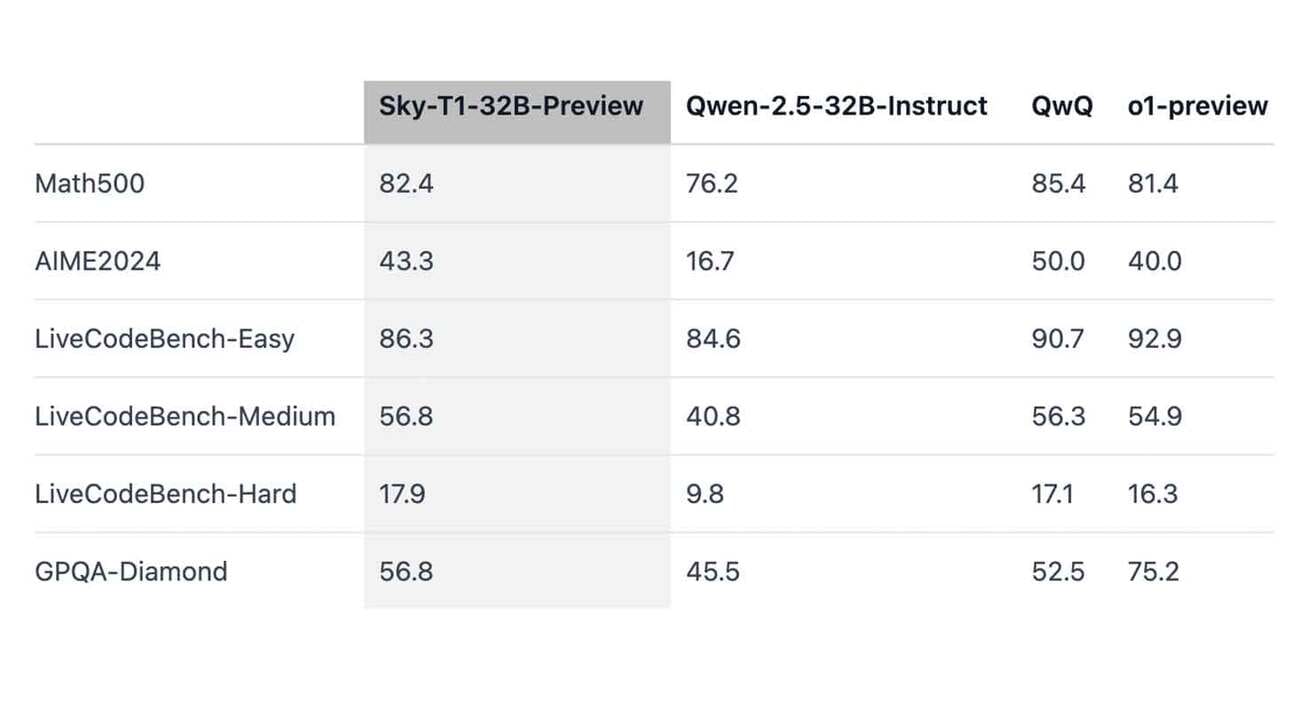 Sky-T1 is a fine-tuned version of Alibaba’s Qwen2.5-32-Instruct, with training data generated using the open-source reasoning model QwQ-32B-Preview.
