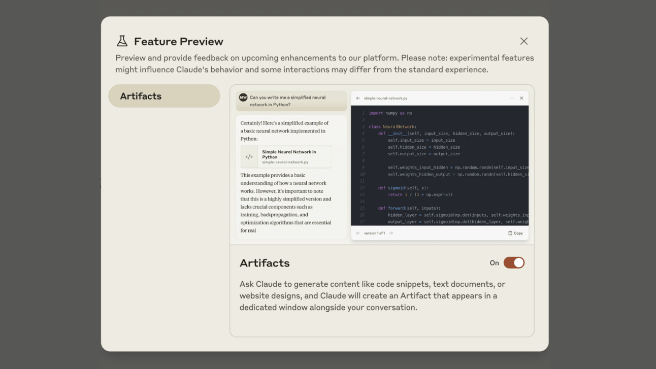 The ‘Artifacts’ feature was introduced alongside Claude 3.5 Sonnet in June, allowing users to view, edit, and build in a real-time side panel workspace.
