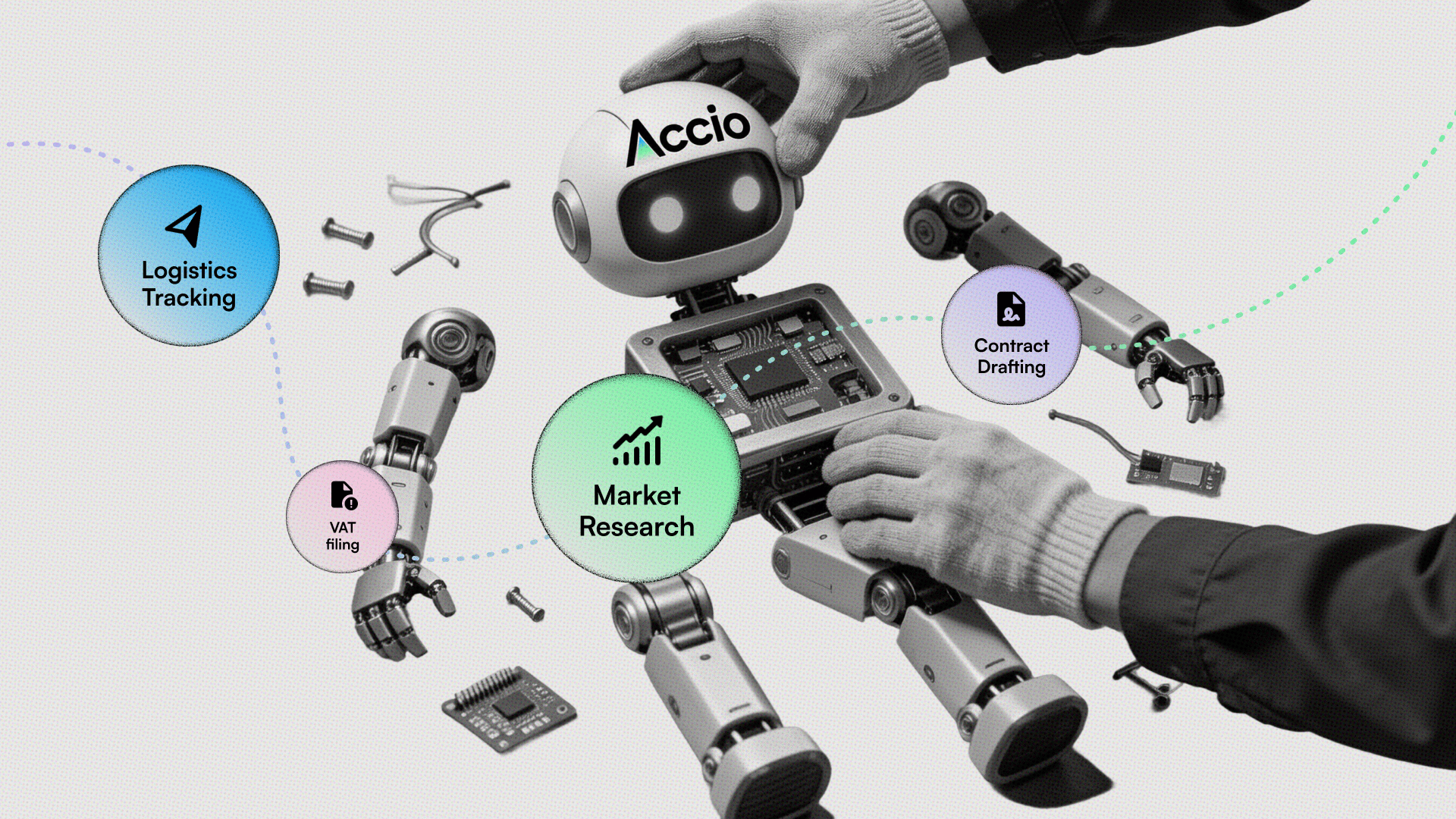 Once approved, it handles logistics tracking, contract drafting, and VAT filing prep. The human role is final sign-off on payments and regulatory submissions, not managing the process itself.
