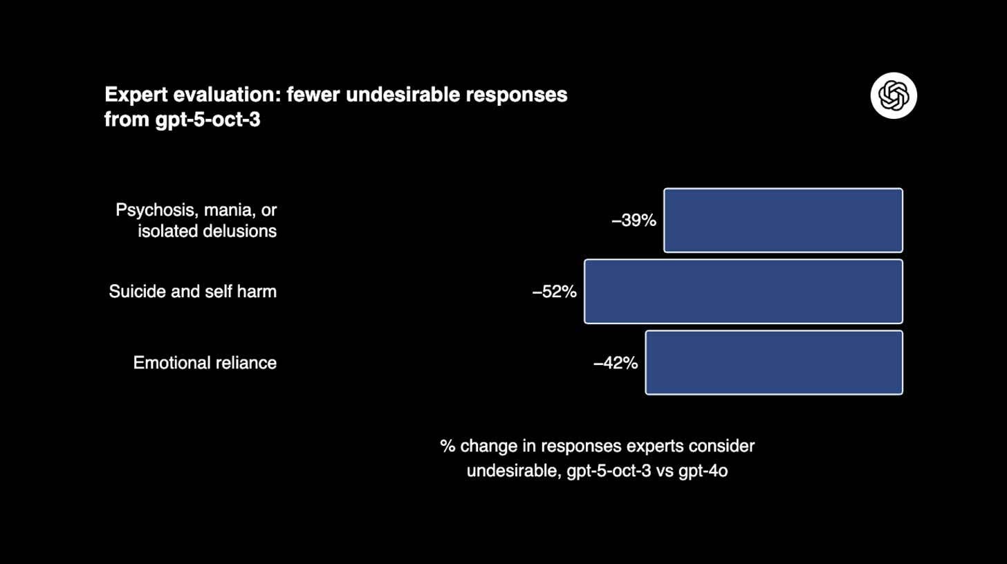 Why it matters: The amount of mental health chats being fielded by AI is staggering, and is a difficult situation for OAI to moderate, with some cases likely benefiting from the tool and others leading to even worse spirals. While it’s clear positive steps are being taken, it’s a segment of AI use without a clear-cut ‘correct’ path forward.