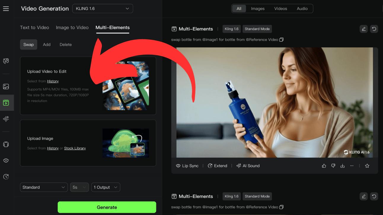 Log in to Kling AI, navigate to the "Video" section on the left sidebar, and select "Multi-Elements.”
