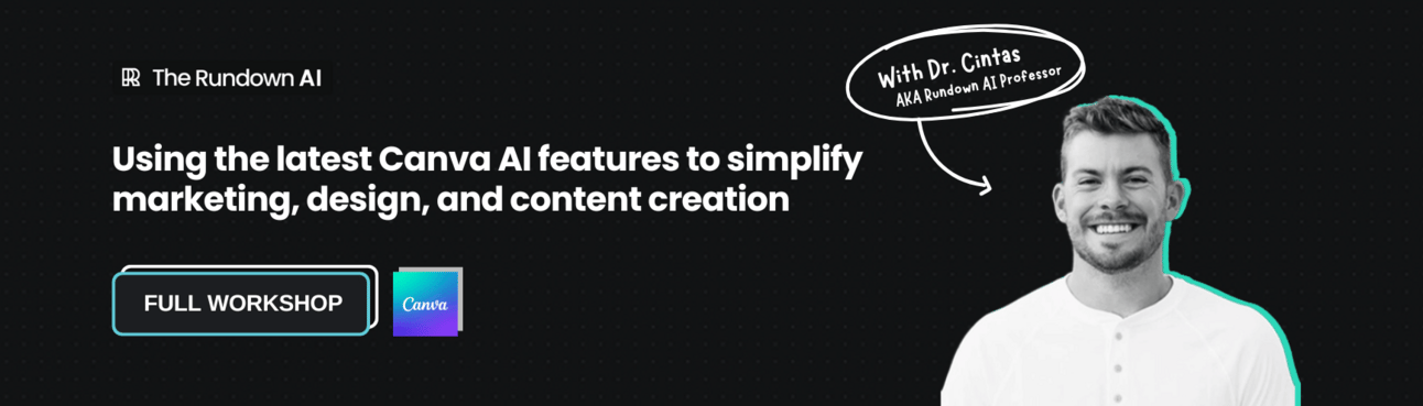We just did a workshop showing how to bring your most complex ideas to life using Canva’s powerful creative tools with Dr. Alvaro Cintas, The Rundown’s AI professor.