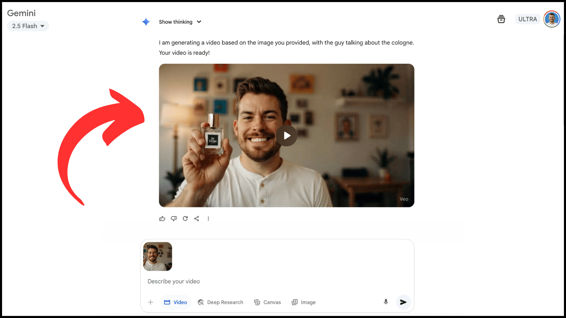 Upload your image to Google Gemini’s Video tool and prompt: “Guy talks to the camera saying: [dialogue]”