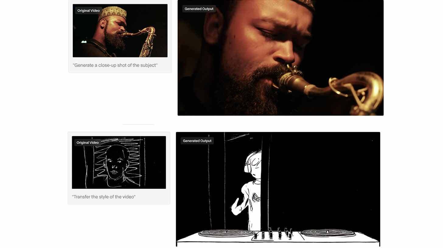 Other editing features include relighting scenes, creating green screen mattes, changing settings and characters, and generating the next shot in a sequence.