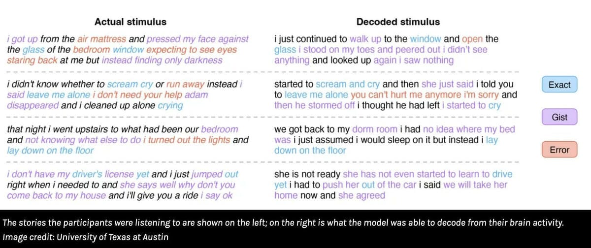 This new study will literally- *blow your mind*. Researchers at the University of Texas have developed a GPT-based decoder that can translate thoughts into text using non-invasive fMRI scans.