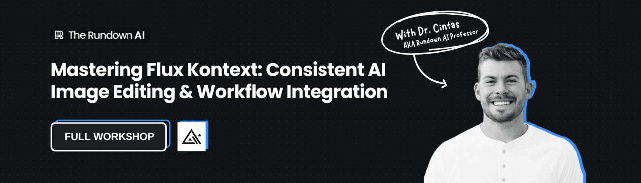 Join our next workshop today, June 6th at 4 PM EST with Dr. Alvaro Cintas, The Rundown’s AI professor. By the end of the workshop, you’ll confidently be able to incorporate Flux Kontext into your creative workflows for consistent, high-quality results.