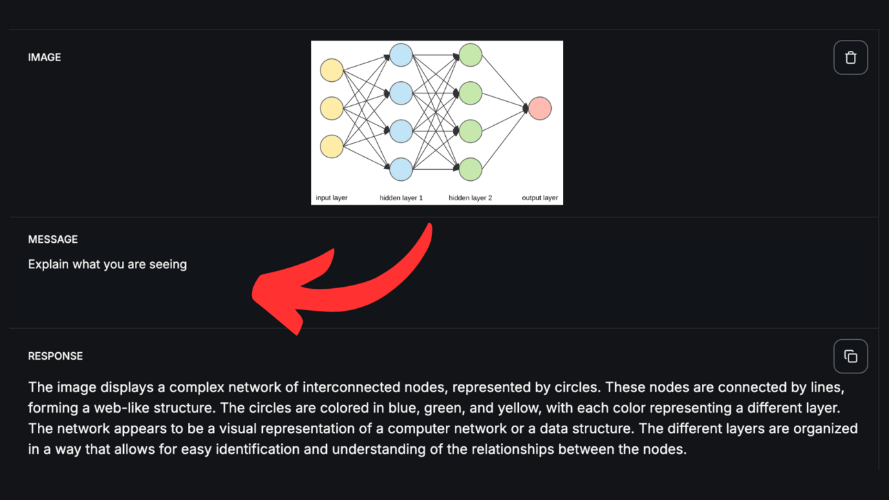 Enter a prompt or question about the image in the "MESSAGE" field below.