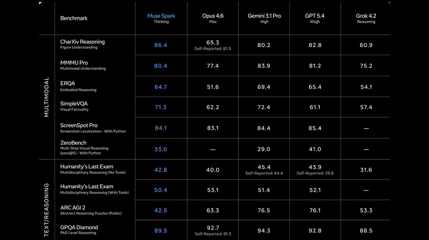 Meta's Muse Spark isn't topping every benchmark, but it puts the tech giant squarely back in the game — with the resources, data, and 3B+ daily users to build on from here.