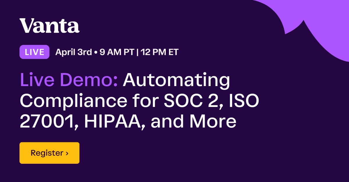 The Rundown: Navigating new compliance requirements can be daunting, but with the right automation tools, it doesn't have to be. Whether you’re a fast-growing startup or a big security team, Vanta can help you achieve continuous compliance (and more).