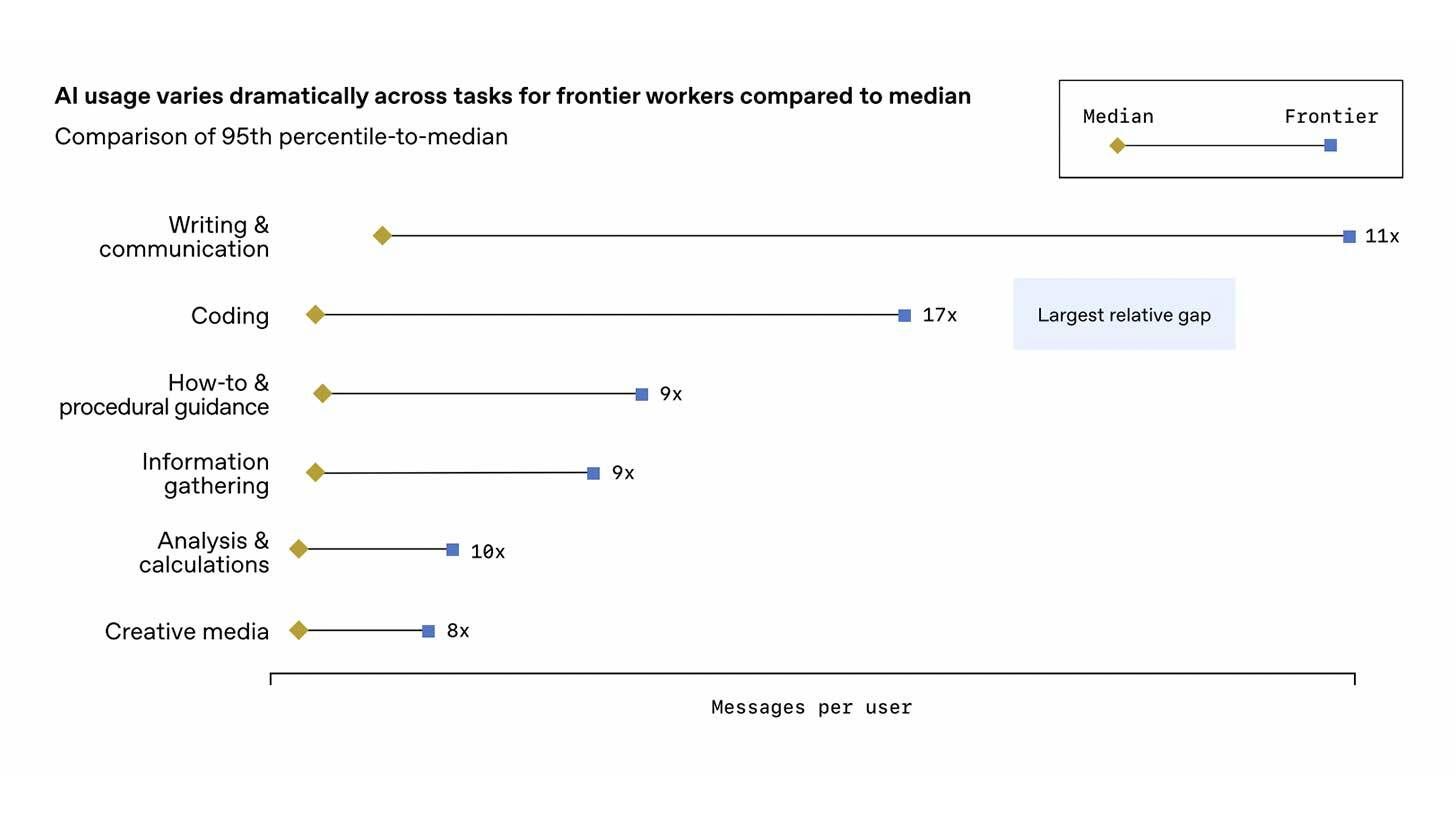Why it matters: It’s no surprise to see adoption and productivity increasing, and OAI’s report shows what many suspected — AI is already reshaping the workplace on a massive scale. One of the biggest unlocks is the 75% of users doing tasks they literally couldn’t previously — enabling more cross-functional productivity than ever before.