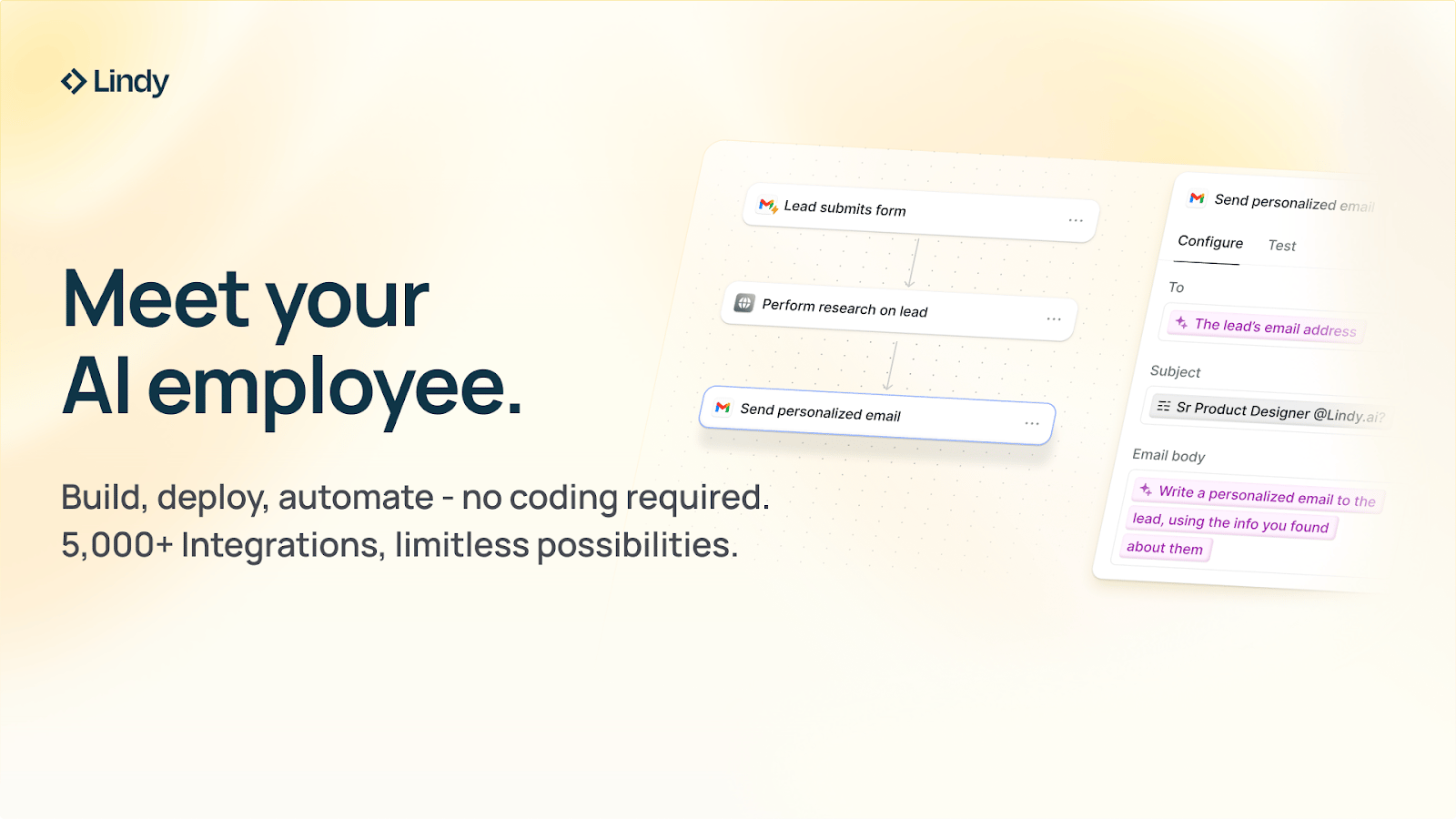 Start free with $20 in credits today and get up and running in minutes with Lindy’s 6,000+ integrations.