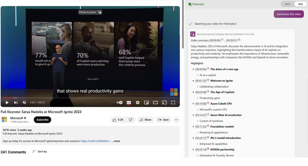 Music Creativity: Through a new partnership with Suno AI , Copilot can now generate music tracks and even summarize/answer questions about videos.
