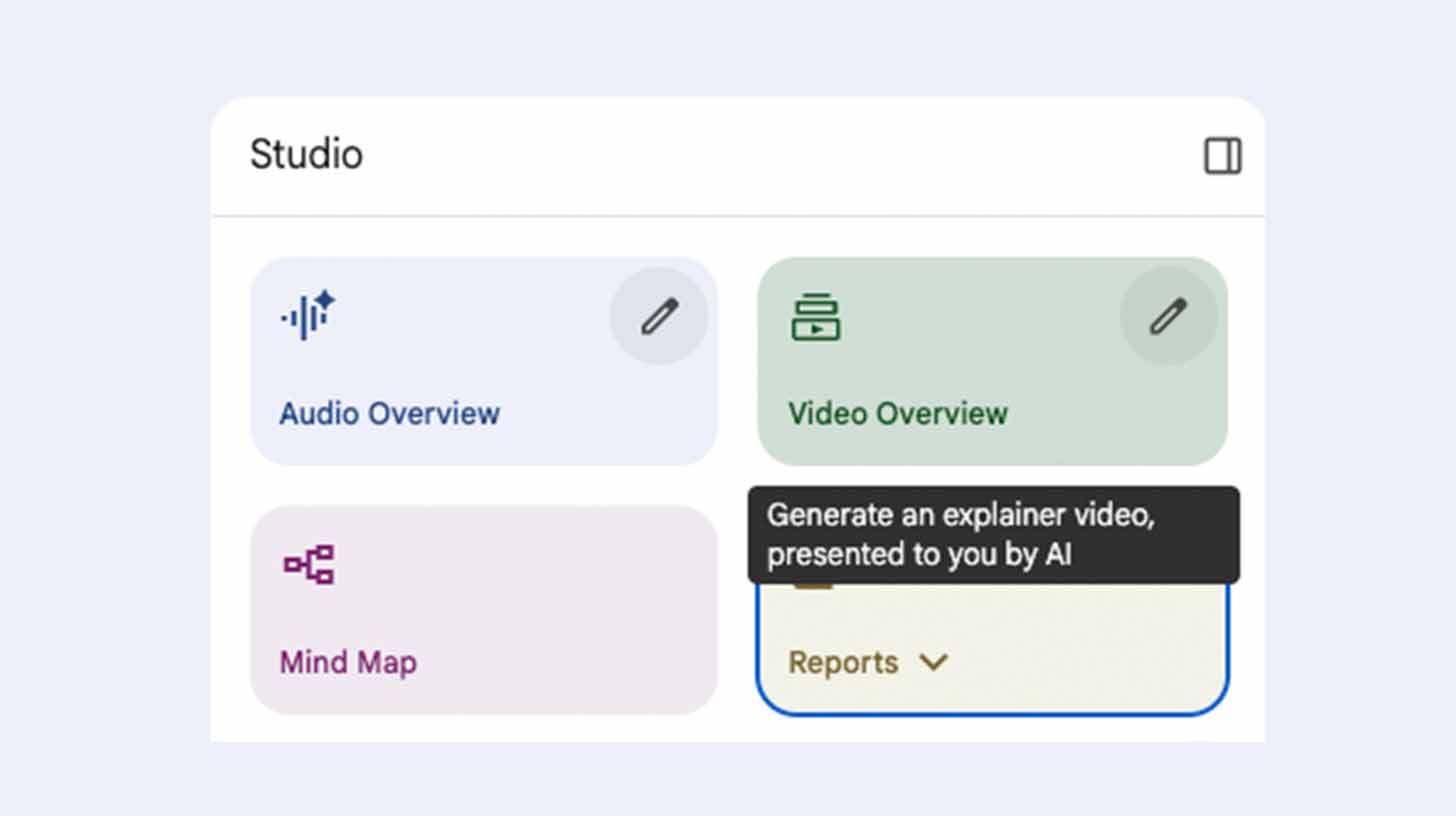 Choose your output mode: Summary for a quick overview, Mind Map for visual connections, or Video Overview for a podcast-style explainer with visuals