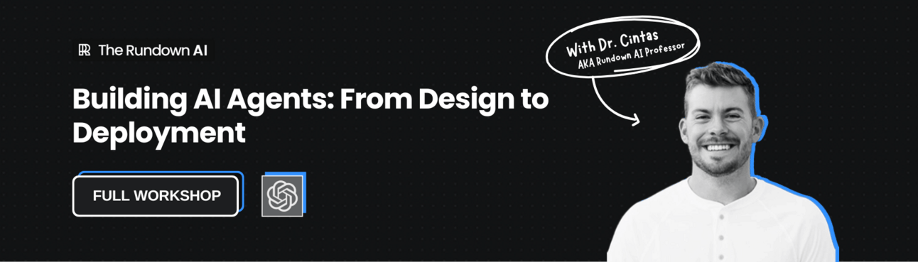 Join our next workshop today at 4 PM EST with Dr. Alvaro Cintas, The Rundown’s AI professor. By the end of the workshop, you’ll confidently understand how to design, build, and deploy your own AI systems using OpenAI’s Agents SDK.